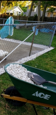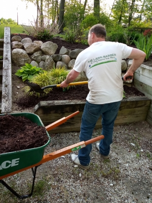 - Putting down mulch